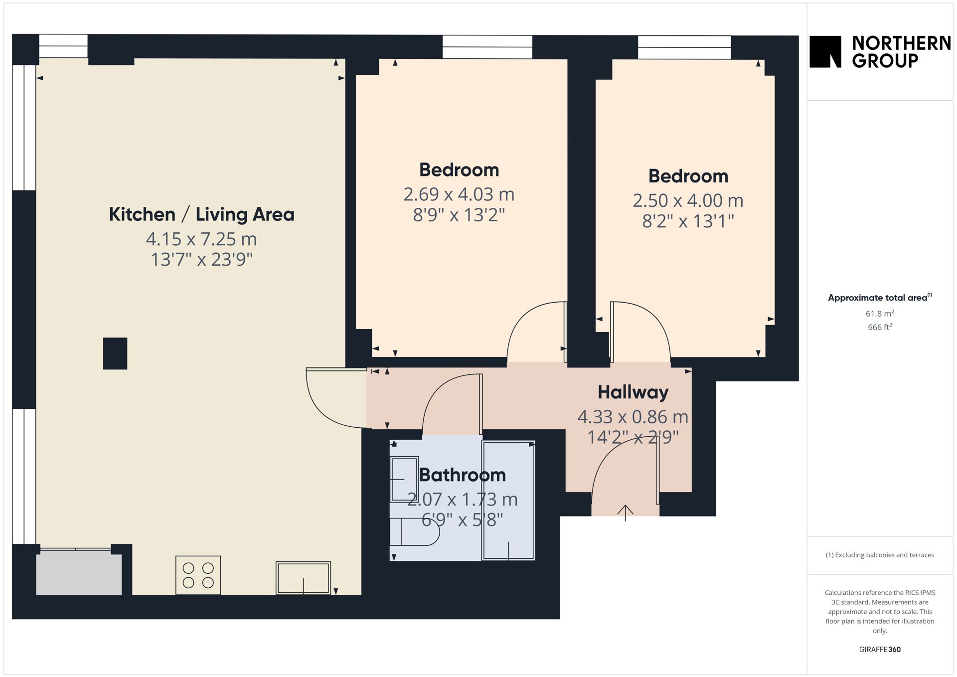 The property comprises an entrance hallway leading to a spacious open-plan lounge and modern kitchen with integrated appliances. There are two double bedrooms, a contemporary three-piece bathroom suite, and ample fitted storage. Finished to a high standard throughout, this apartment combines practical living with modern fixtures and quality flooring.