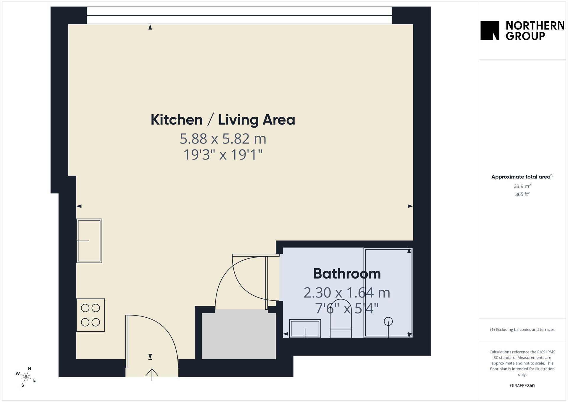 - 365 sq ft apartment