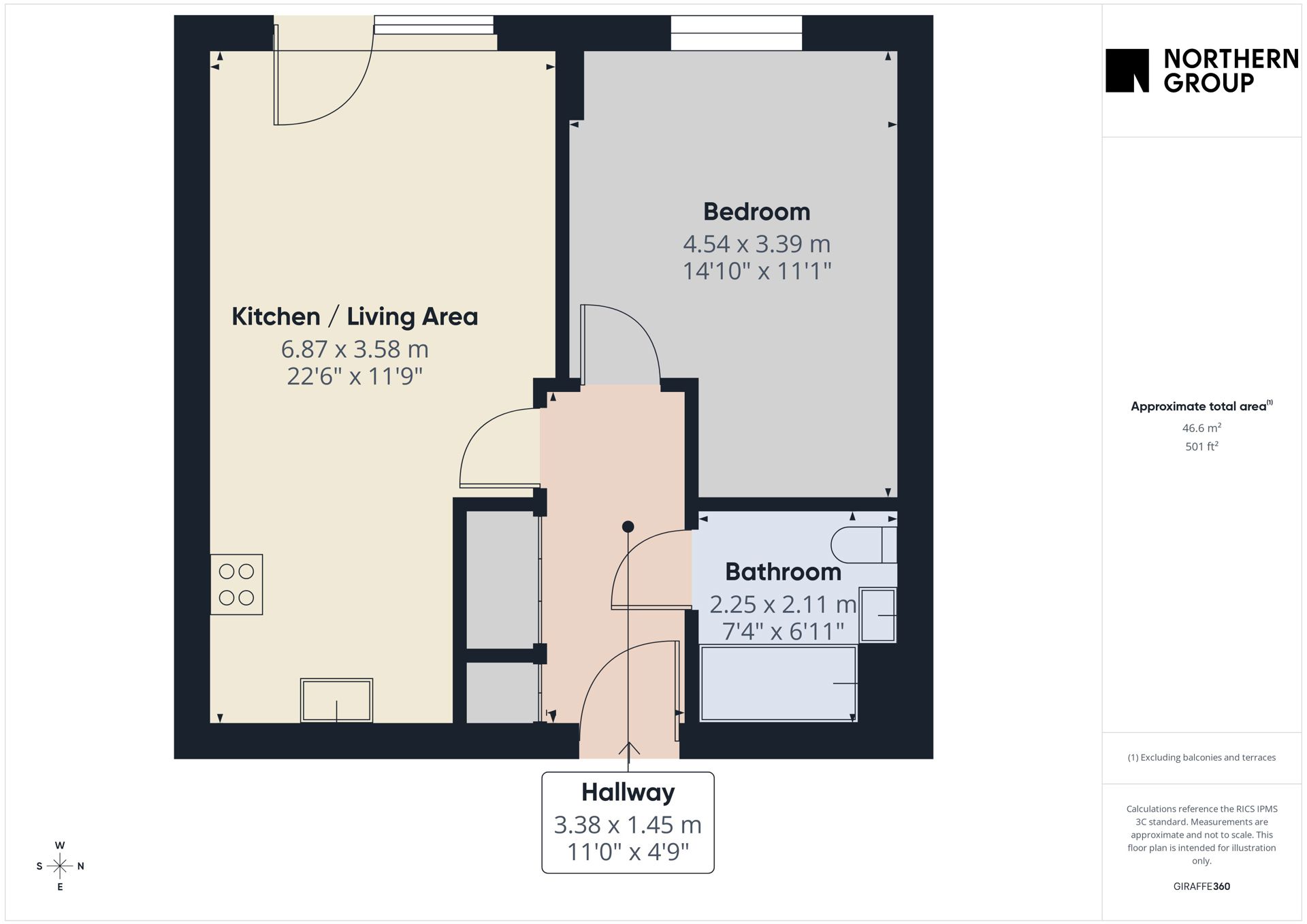 Internally the property consists of an entrance hall with storage cupboards where the washer/dryer is located, large double bedroom, 3-piece bathroom suite with shower over the bath and LED mirror, and open plan kitchen and living space. The kitchen has integrated appliances: fridge-freezer, microwave, dishwasher, oven and hob. There is a Juilette balcony space with the apartment.
