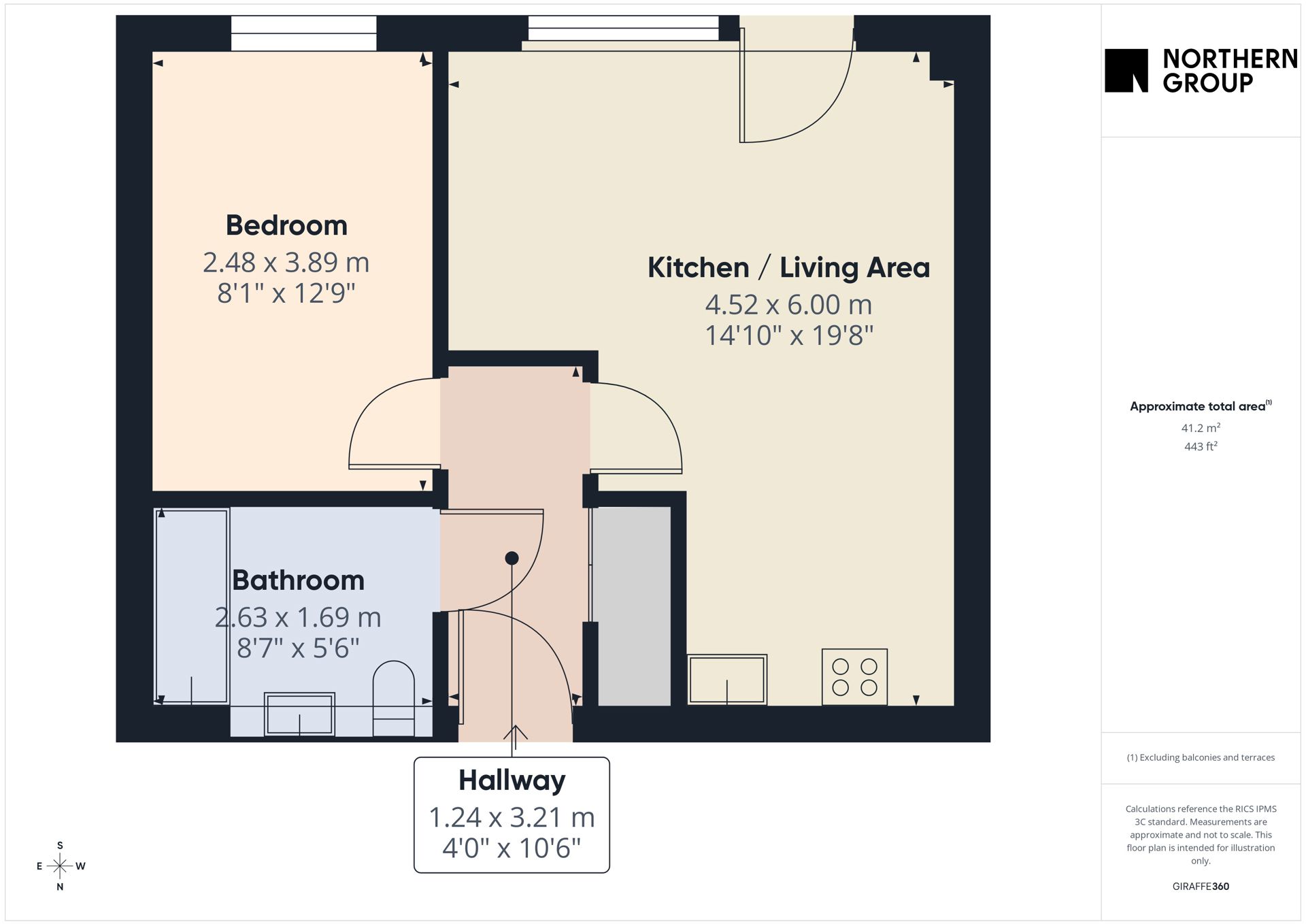 - 443 sq ft apartment
